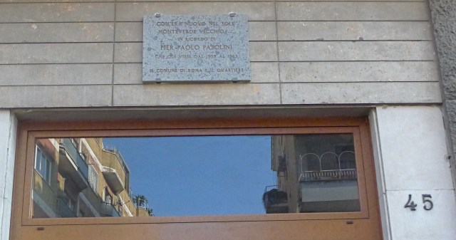 Je commence à prendre mes repaires dans Monteverde. Déjà, grâce à une référence de Roma, The Second Time, j’ai trouvé certains lieux où PPP a habité. Une première adresse se trouve dans mon quartier, Via di Fonteiana, près de la Via di Donna Olimpia. On ne précise pas le numéro, mais on fait remarquer qu’il y a une plaque dans le hall d’entrée d’un de ces «buildings».