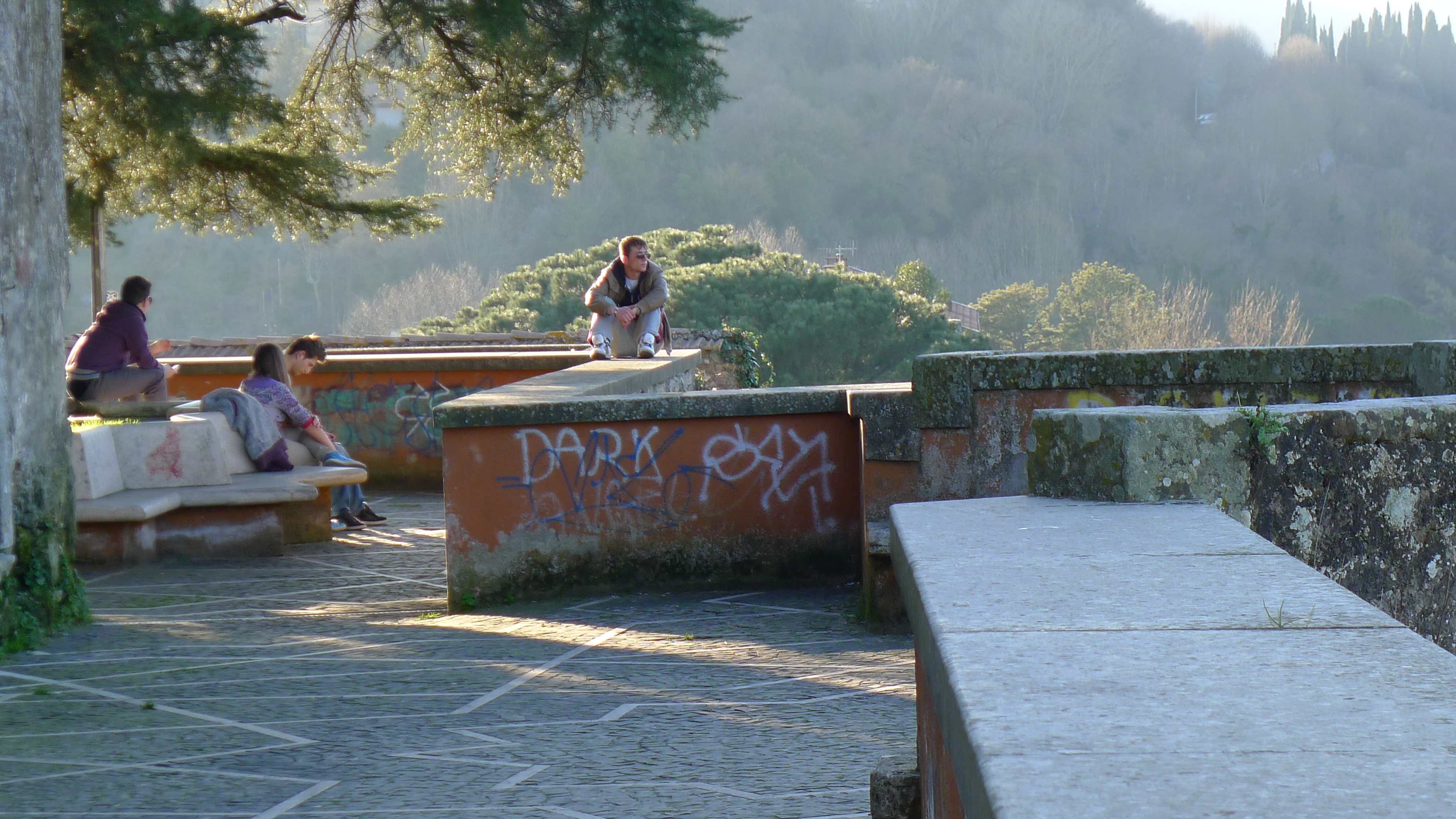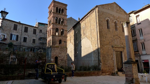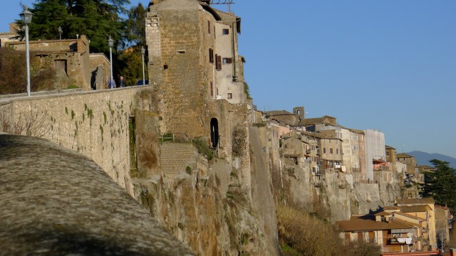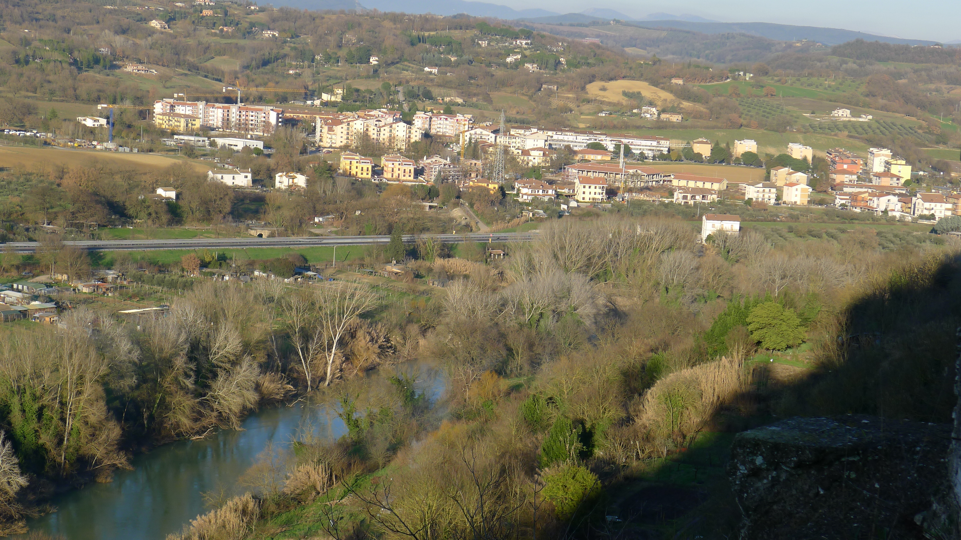 Il a été facile de se rendre à Orte à partir de la gare du Trastavere. Un train nous emmène, Malika et moi, directement à la gare d’Orte; et de la porte de la stazionne, des bus essaiment vers la vieille ville. Durant le trajet, je distingue au loin la forme, le profil, la silhouette de cette ville, comme un «tableau de la renaissance du Nord» dans ce paysage automnal de terre brunâtre, noyée dans une brume bleue où se découpe le contour de la cité sous un ciel gris…