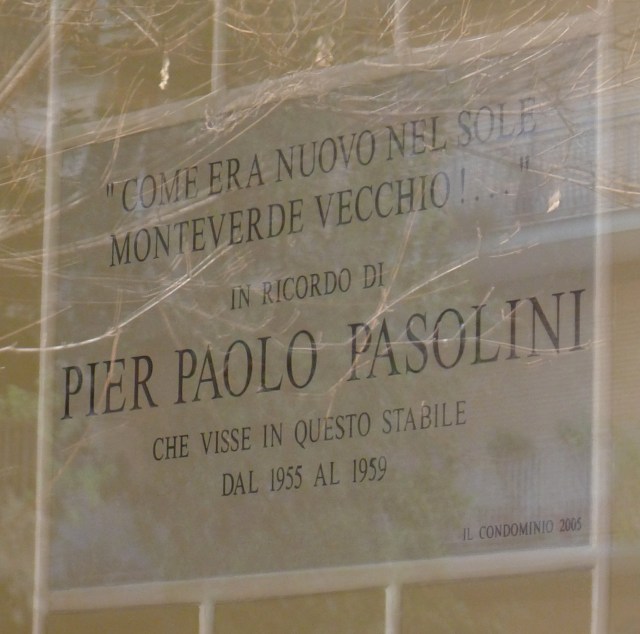 De la gare, nous prenons le bus qui fait le tour du quartier Monteverde. Et nous passons devant l’un des deux logements habités par Pasolini à Rome.