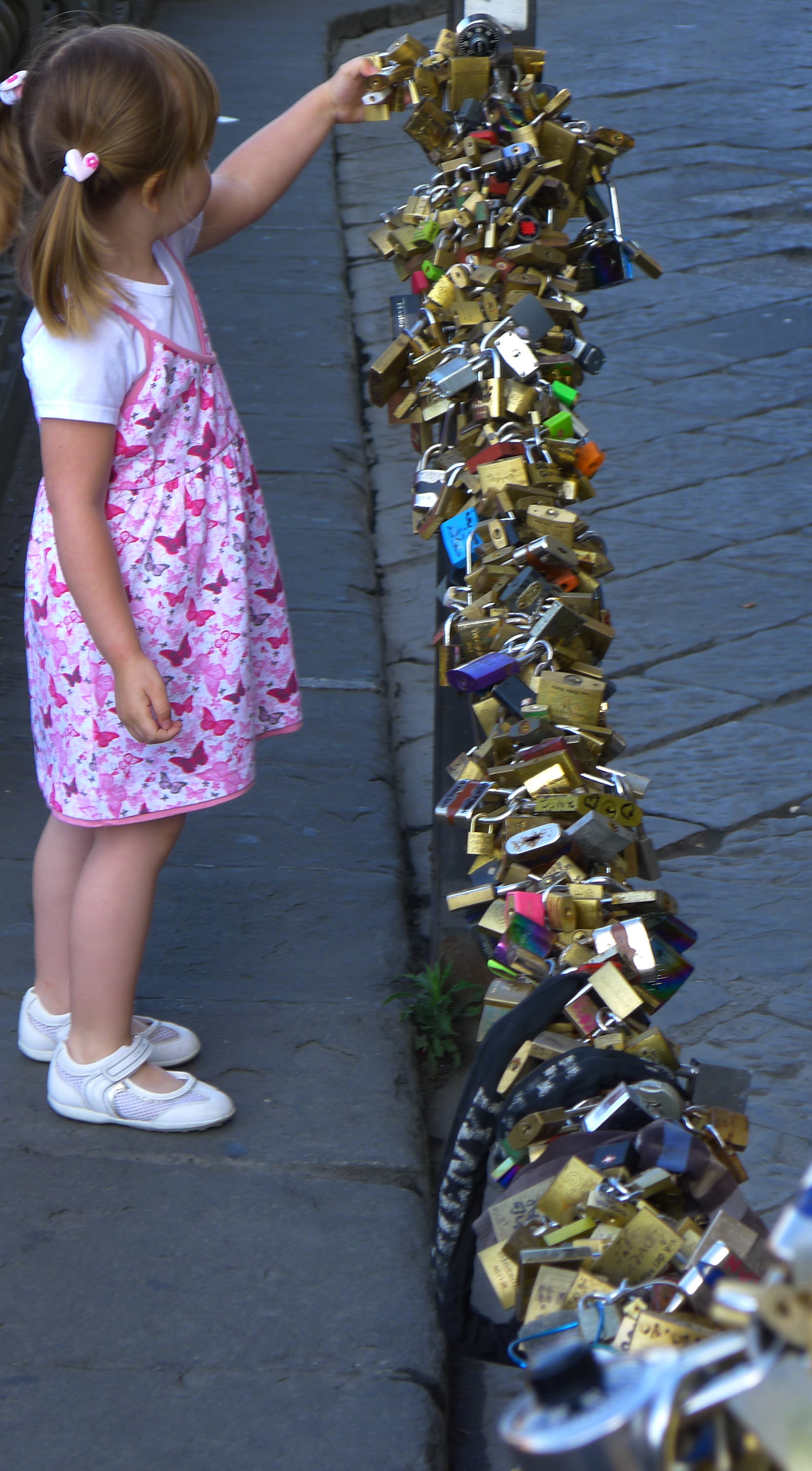 Je trouve l’explication sur Wikipedia : «En Italie, le cadenas est devenu un symbole d’amour. Les couples accrochent un cadenas d’amour sur des lieux réputés comme sur le Ponte Vecchio à Florence ou sur le Pont Milvius à Rome avant d’en jeter la clé. Le cadenas symbolise alors leur amour. Cette tradition, inspirée du roman Ho voglia di te de Federico Moccia, s’est rapidement répandue à travers le pays, au point de mettre en péril certains monuments historiques par le poids résultant de l’accumulation des cadenas. Le mouvement romantique «Cadenas d’amour» («love padlocks»en anglais) fait aussi maintenant rapidement fureur à Bruxelles, PlaceEugène-Flagey, près de l’étang, à Ixelles) ainsi qu’à Paris sur le Pont de l’Archevêque et sur le Pont des Arts.»