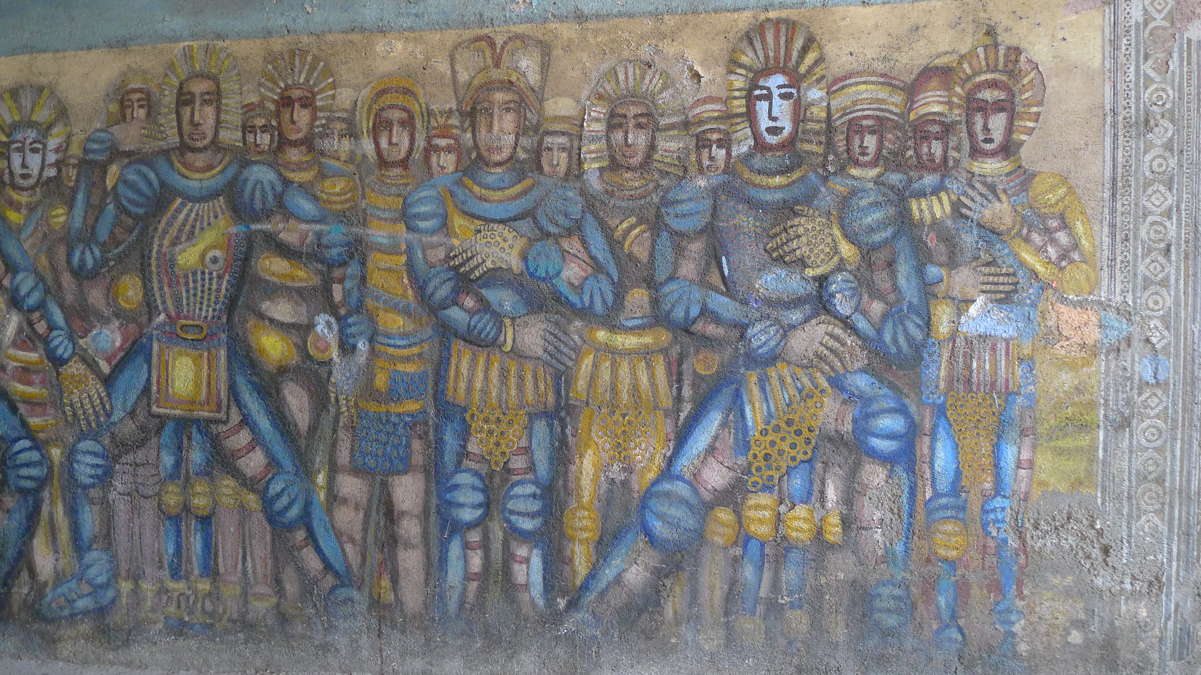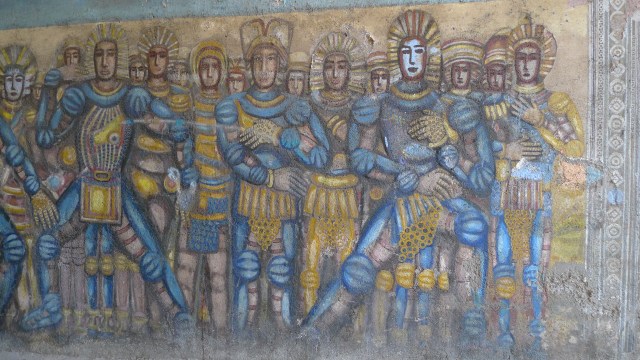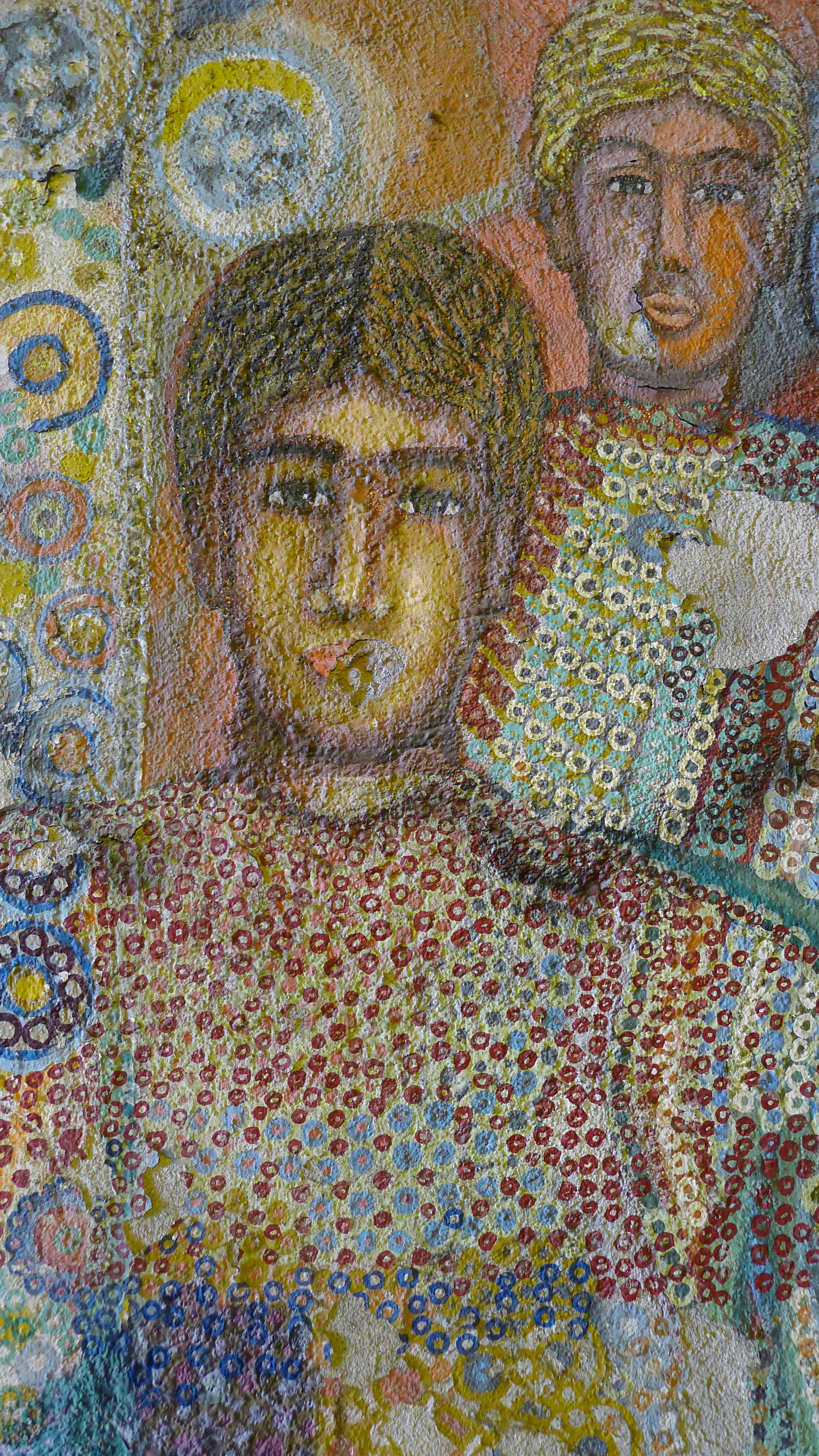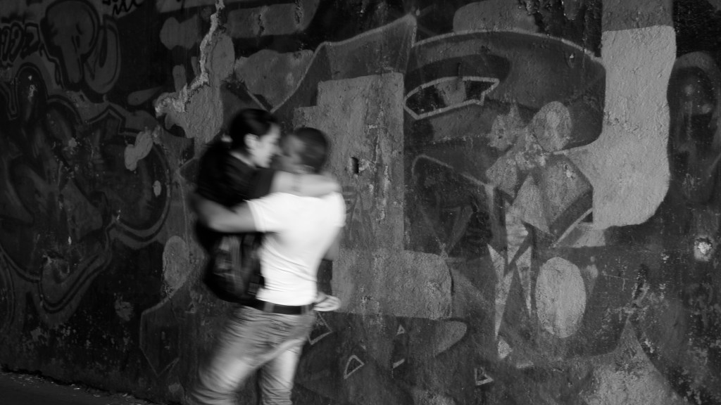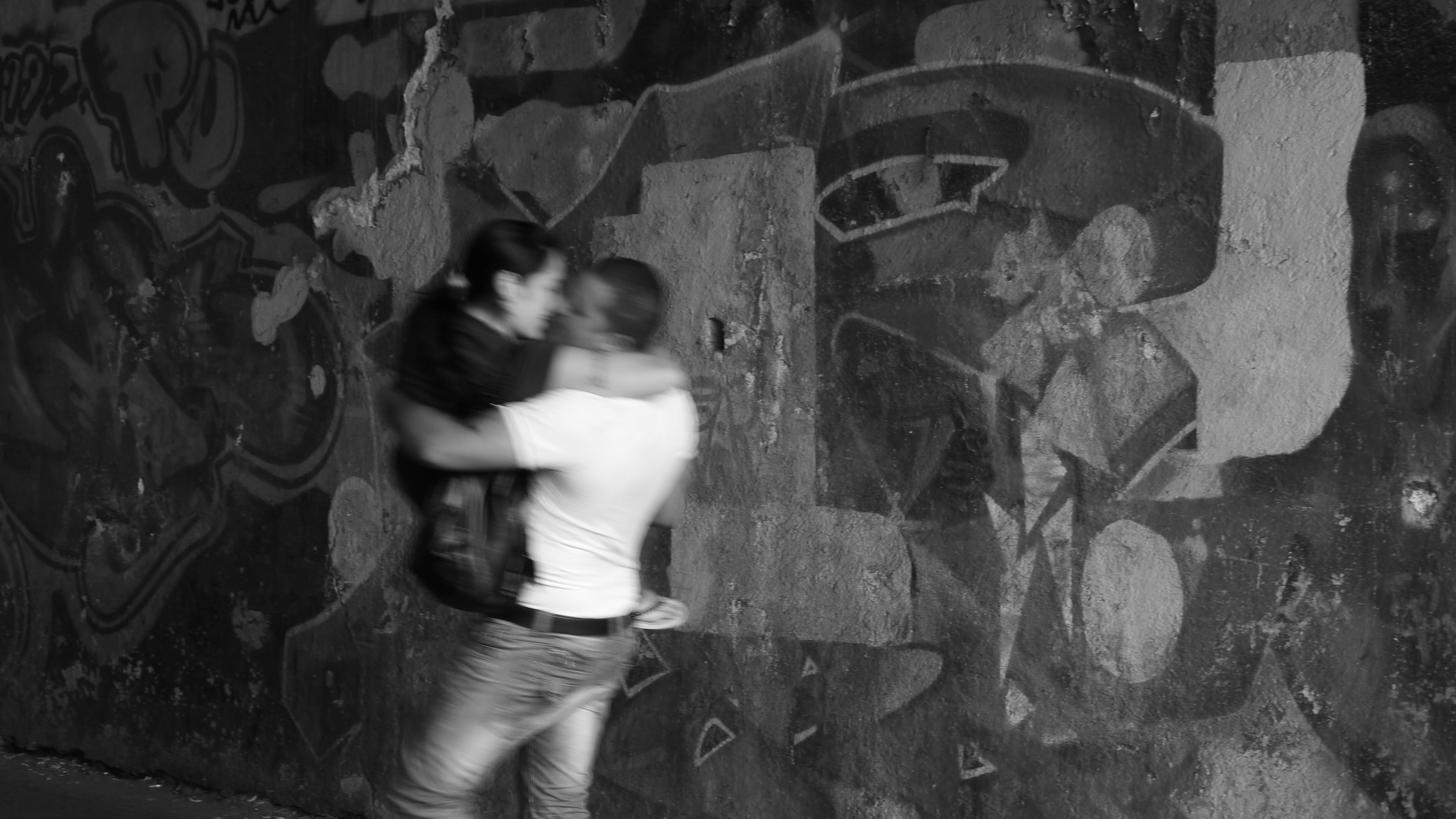 Nous nous engageons dans un tunnel pour piétons long d’une cinquantaine de mètre. De chaque côté, les murs sont couverts de graffitis… Les passants ne les remarquent sans doute plus, ces gribouillis comme on en voit partout. Eh, oui! c’est malheureux, mais à Rome comme ailleurs, on tague beaucoup (mais, encore heureux, rarement sur les monuments…) La plupart du temps, ça ne rime à rien d’autre qu’à dire «Voilà! J’existe et je vous EMMERDE…» Mais parfois, on tombe sur de vrais petits bijoux.