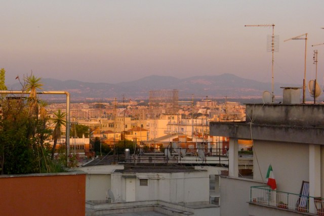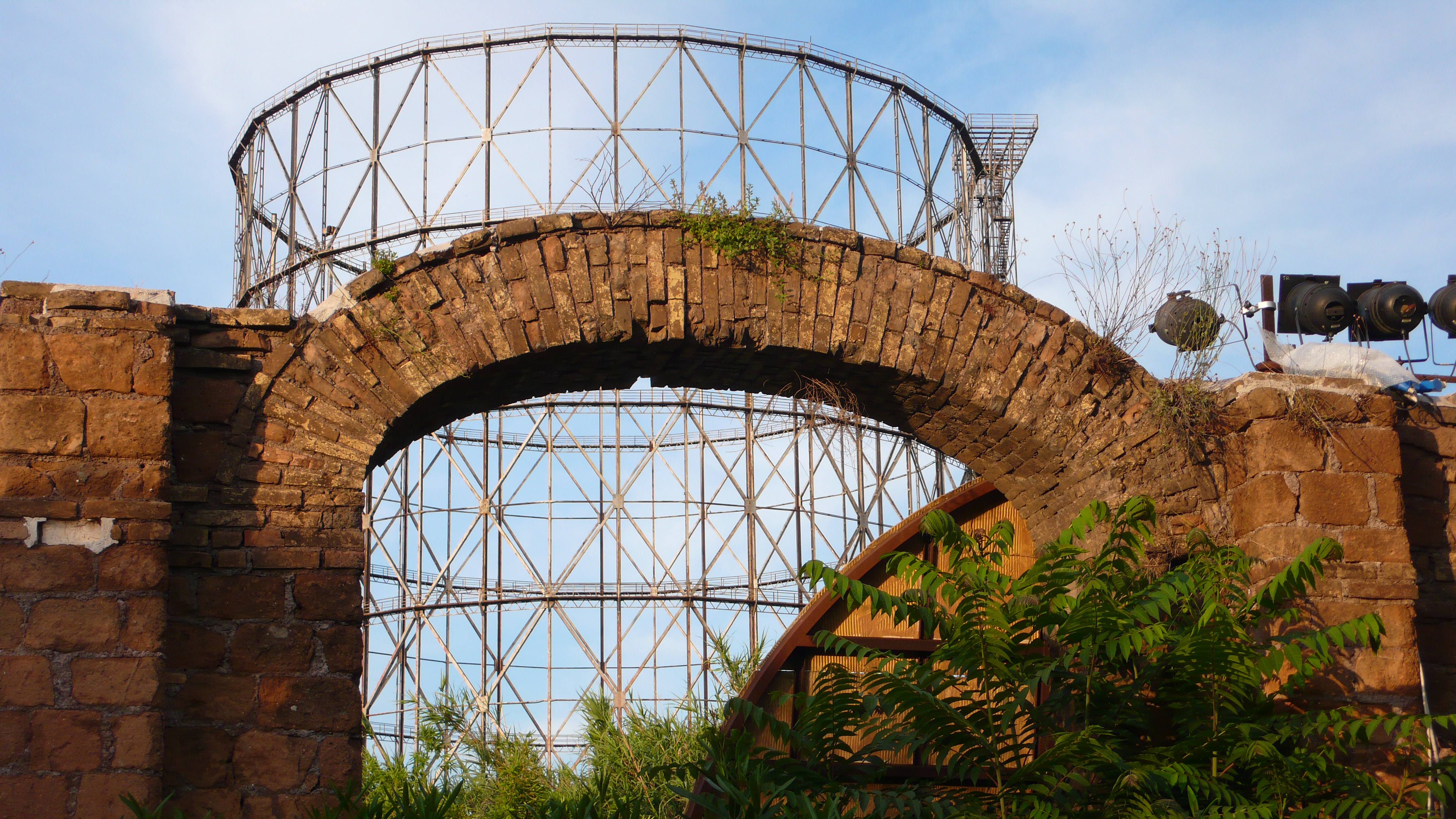 J’attendais l’arrivée de Germain pour la visite de ce lieu incongru : ce fameux Gazometro. Du toit du studio, on peut déjà l’apercevoir…
