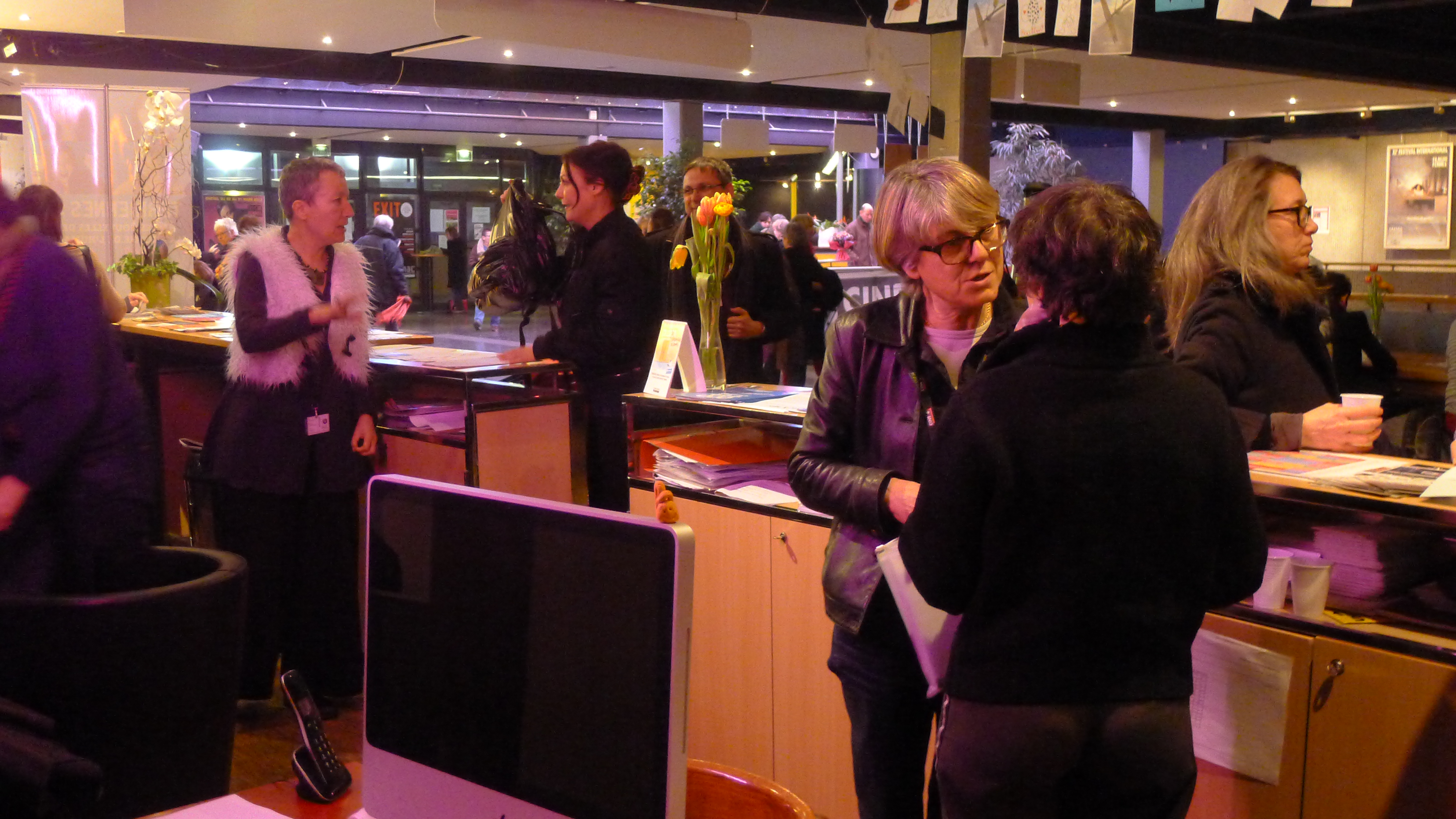 Au matin, avant l’arrivée des festivalières et festivaliers, petite réunion de production de l’équipe du Festival, animée par notre énergique Jackie…