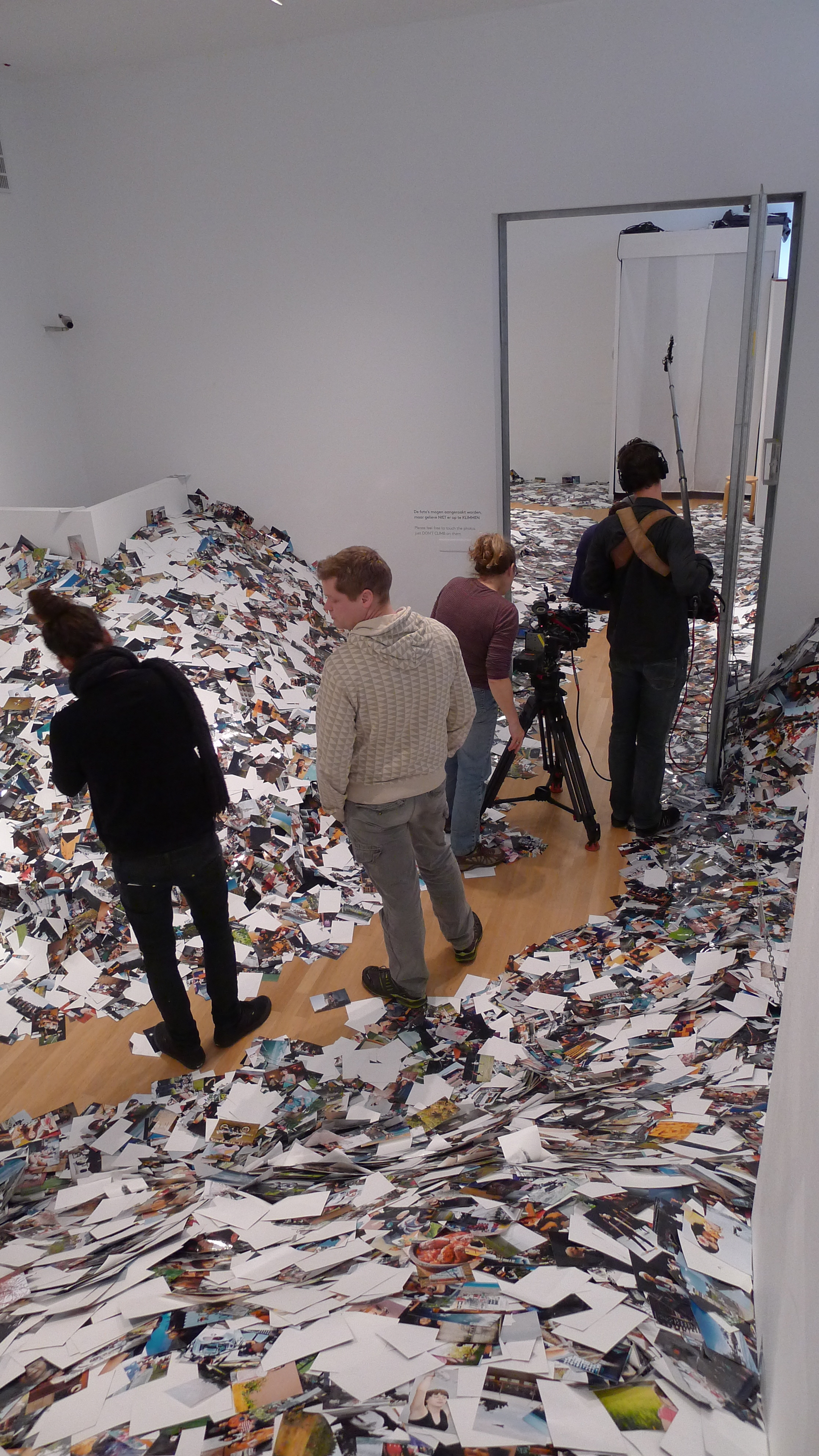 À Foam, Niels et Sanders nous donnent un sérieux coup de main; comme nous, ils sont amusés – horrifiés? – par le constat que laisse cette exposition : deux pièces remplies de photographies, résultat de tirages de 24 heures de photos du site FlickR, une idée géniale de Erik Kessels.