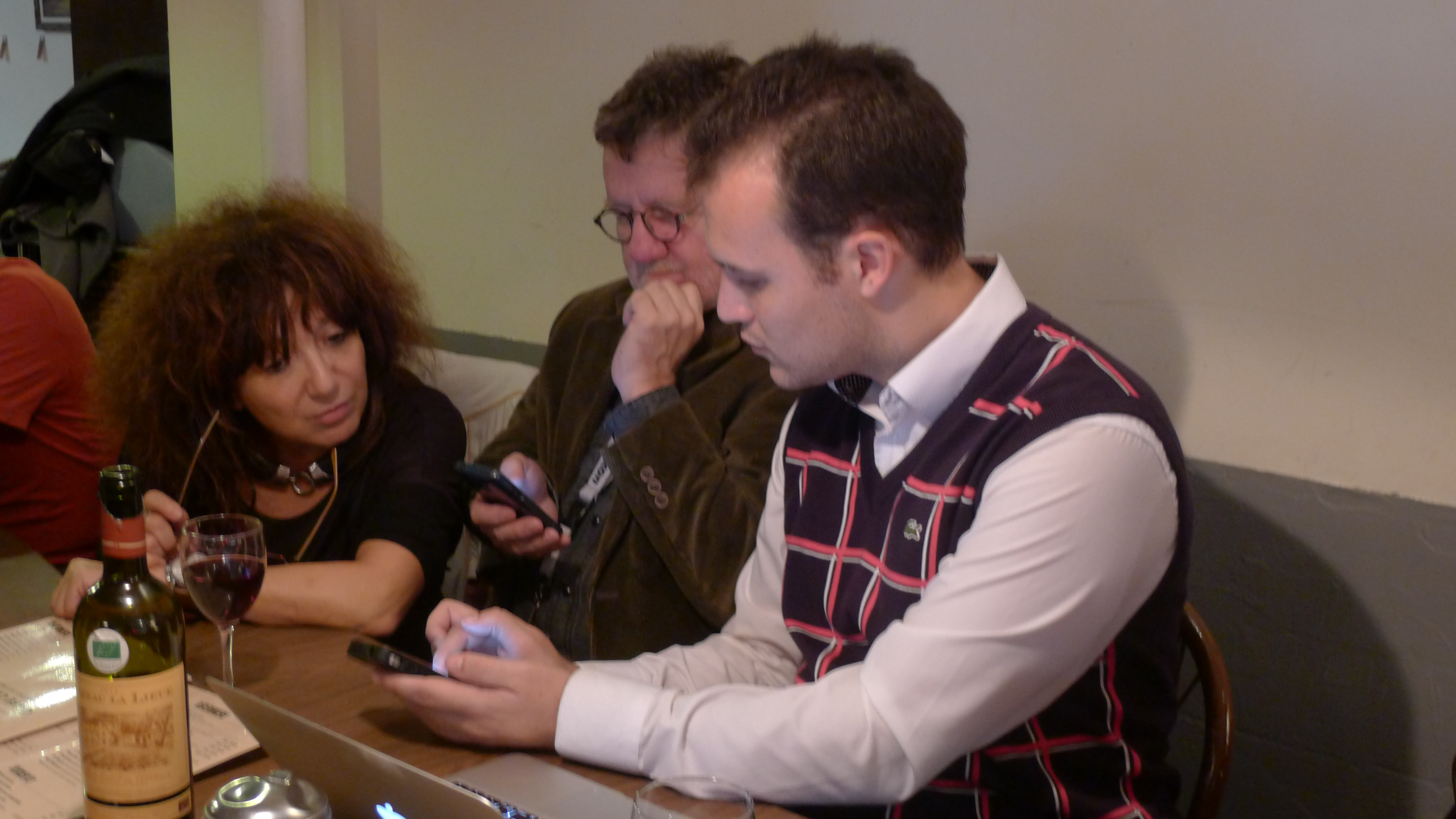 À «ZOOM Photo Fes», on se croise souvent au café Cambio, sur la rue Racine. Ici, Nadia Benchallal, venue avec son exposition Sisters… et le très efficace et toujours attentif Max-Antoine Guérin, le responsable des relations de presse, qu’on retrouvera sans doute au Festival international du film court Regard sur le court métrage au Saguenay en mars prochain.