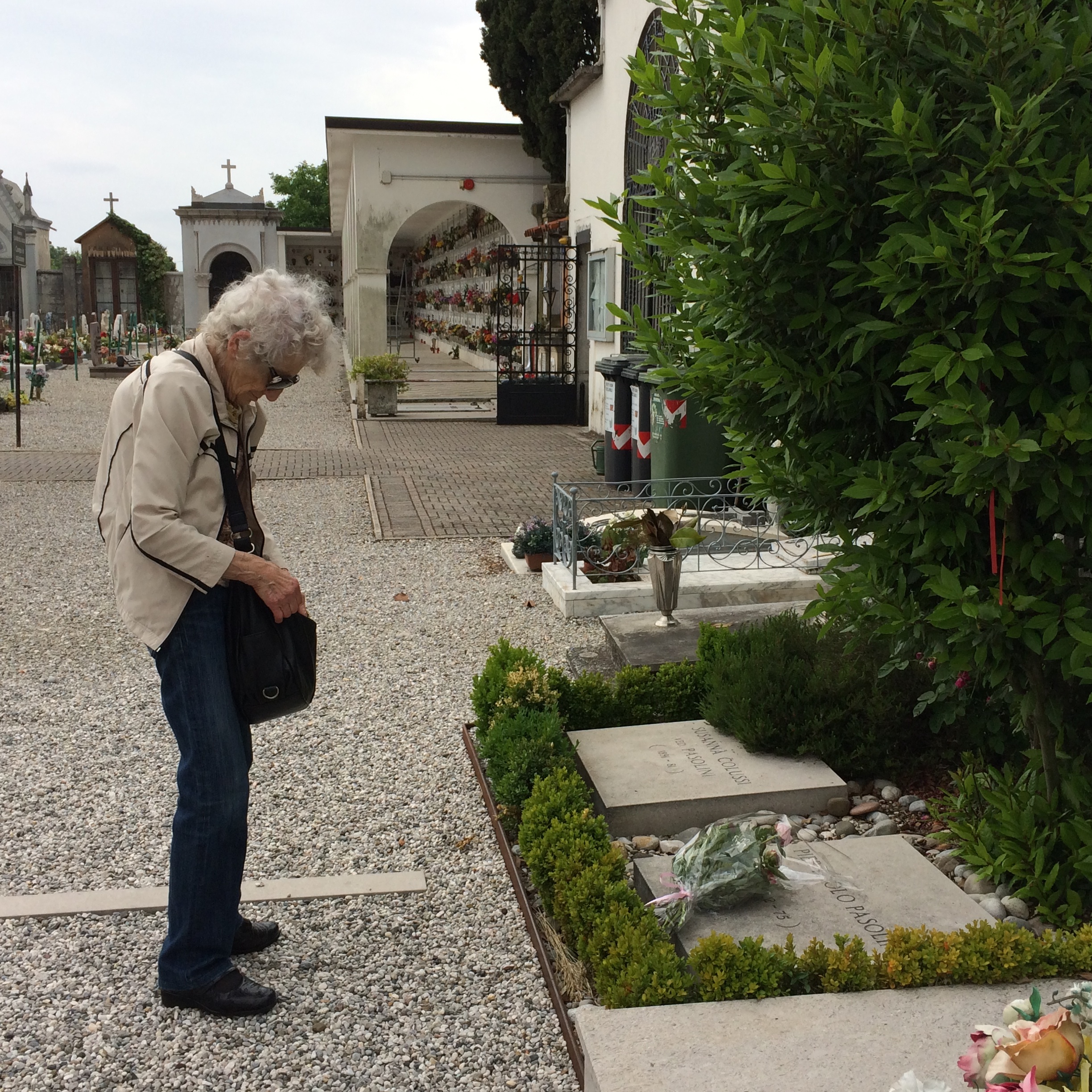 À son retour de Casarsa, l’adorable Cecilia Mangini me fait parvenir cette série de photographies de sa visite sur la tombe de Pasolini. Je suis émue; elle est incroyable, Cecilia, elle a trouvé des fleurs semblable à celles de mon jardin, dont je lui avais envoyé la photo… pour les déposer sur la tombe de Pasolini.