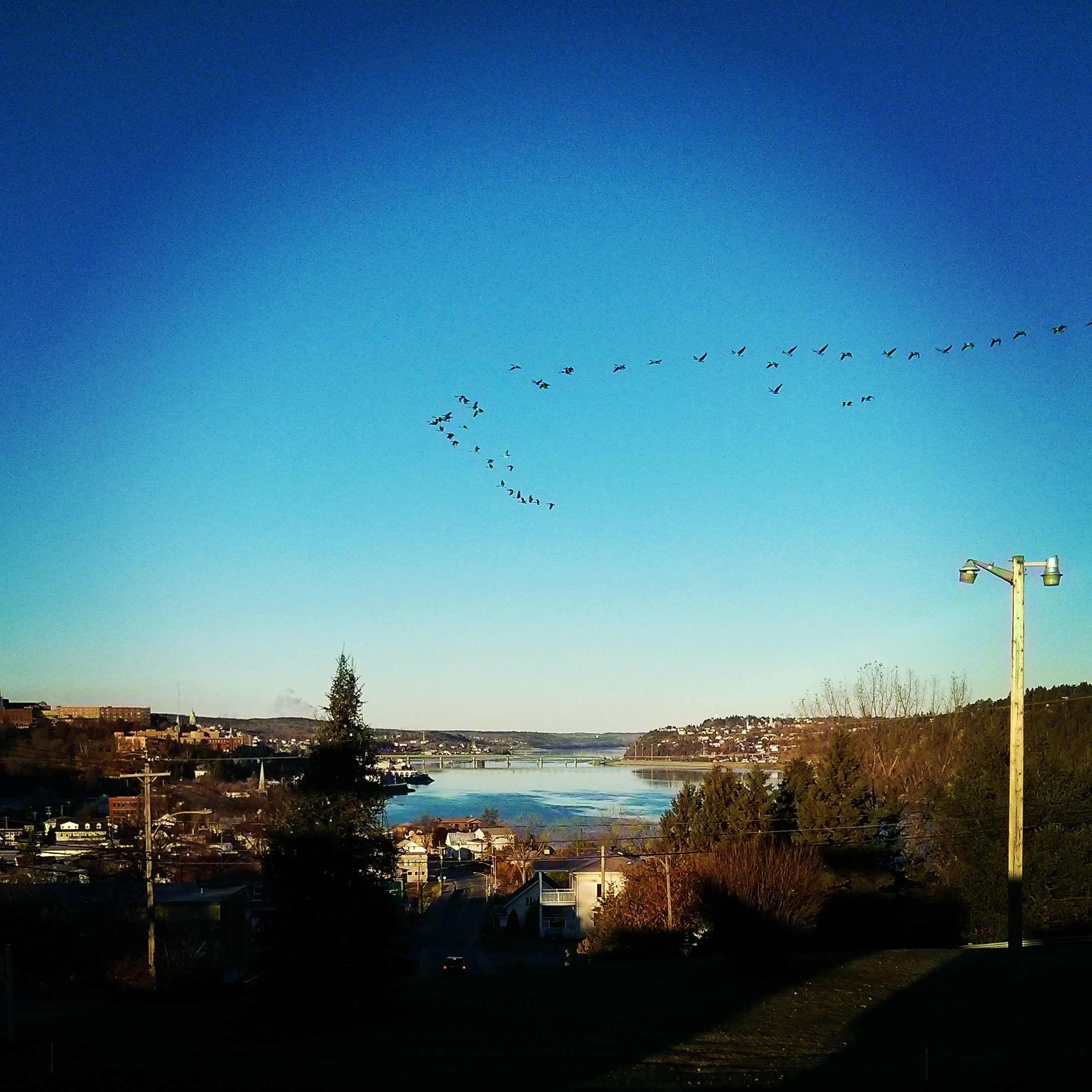 Merci à Pascal Dumont, photojournaliste croisé à Zoom Saguenay, pour cette photo des oies passant au-dessus de ma ville natale. Ce projet naissant s’ancrera toutefois dans ma ville d’adoption, Longueuil. Mais qui sait où nous mèneront ces oies?