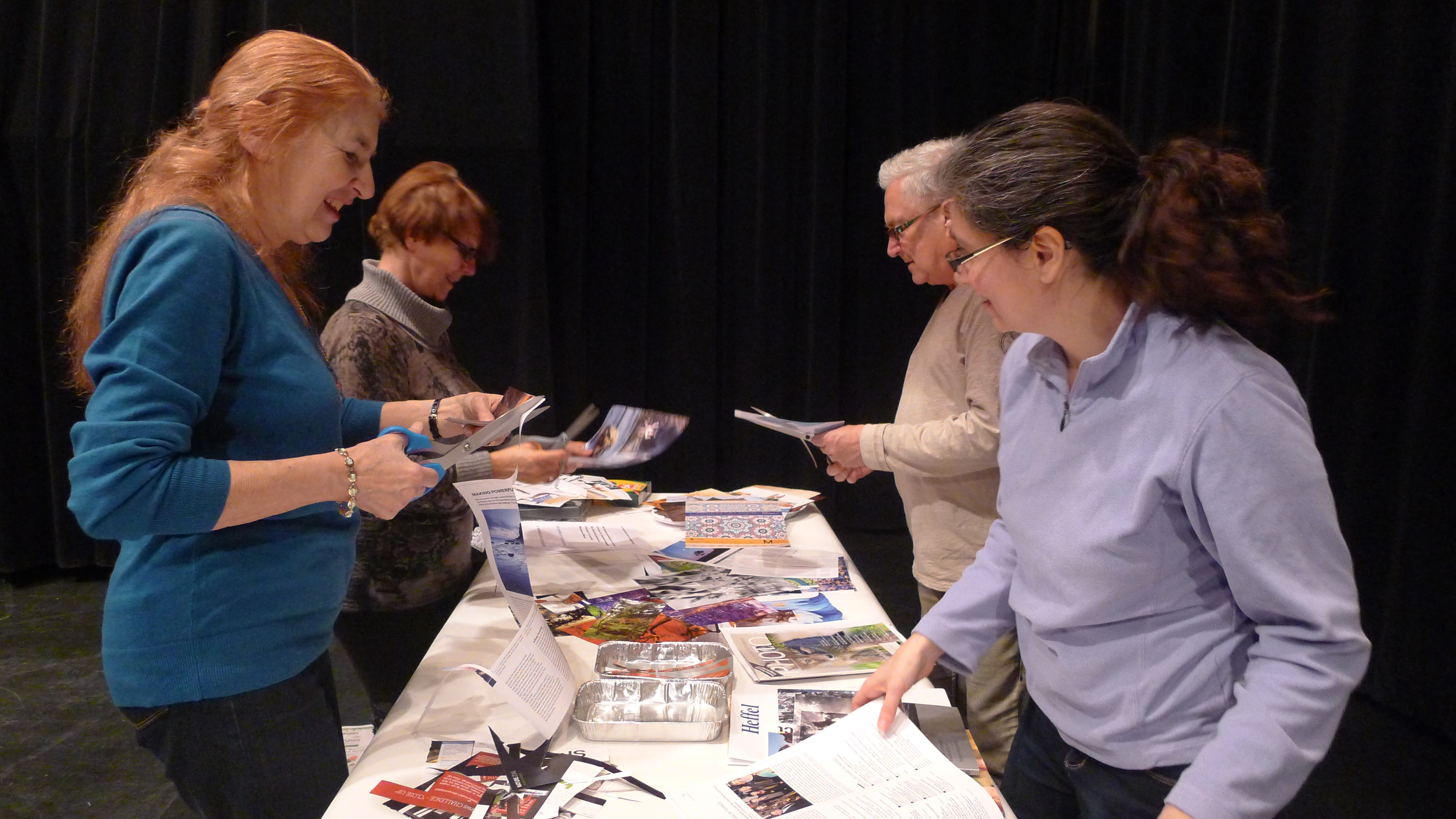 En attendant le prochain rendez-vous, nous nous sommes mis aux arts visuels et nous créerons trois murales : un rappel triptyque de Riopelle et son Hommage à Rosa. En images, nous évoquons le titre du projet Au pays du grand ciel mais aussi des thèmes que cette aventure suggère.