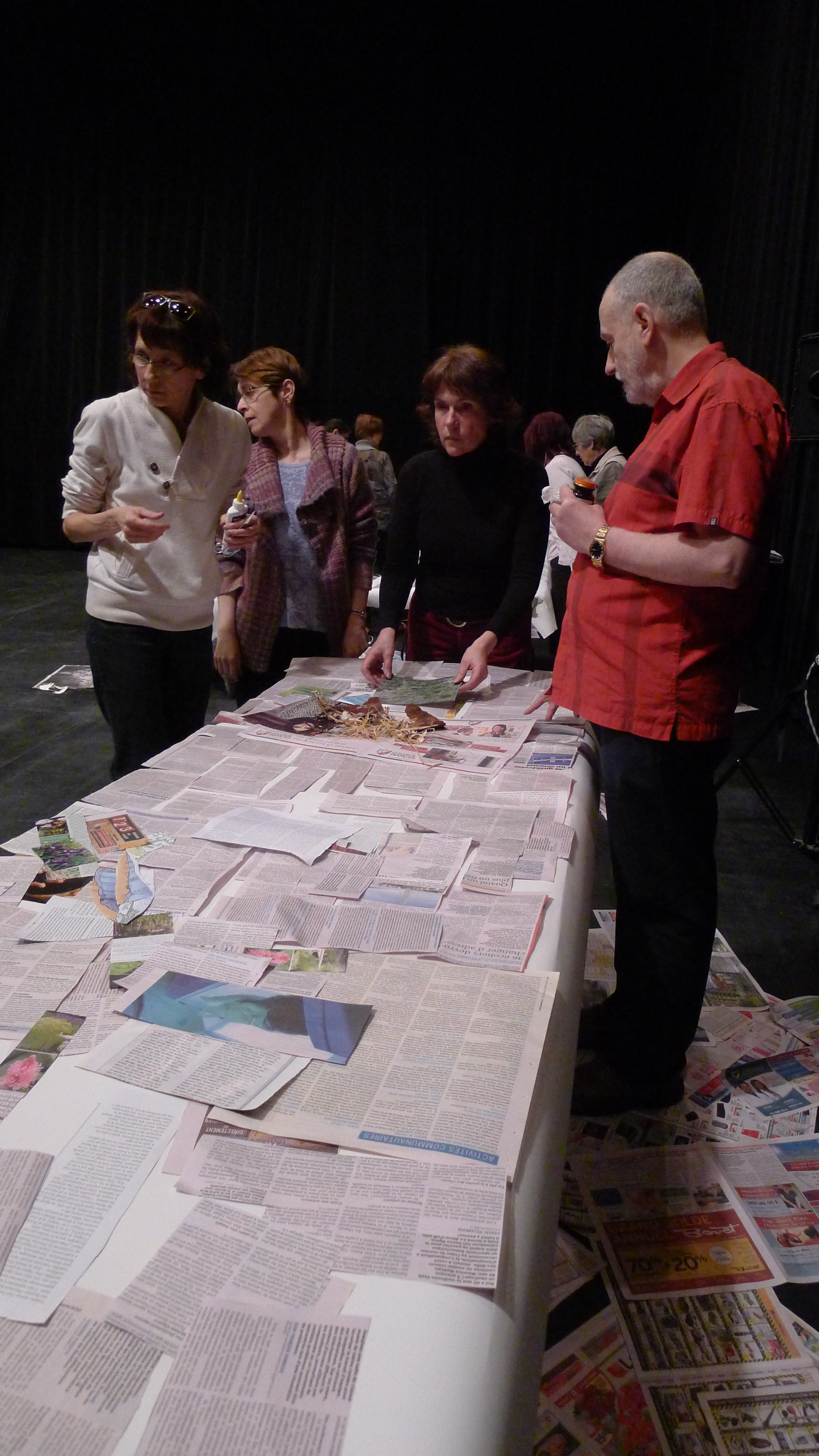 Le groupe, encouragé par cet amoureux des mots, a amélioré quelques passages ici et là afin de rendre les choses plus fluides tout en prenant soin de ne pas perdre la poésie et la modernité du premier jet. Un exercice de démocratie et de création collective qui s’est déroulé dans la joie. Bori, soutenu par la guitare de Jean-François, a par la suite travaillé la lecture du texte, manière « chœur grec ». Réciter le texte tous ensemble en observant la rythmique est déjà périlleux. Puis nous avons amorcé le chant; encore une fois tenir le rythme et harmoniser nos voix … c’est du travail !