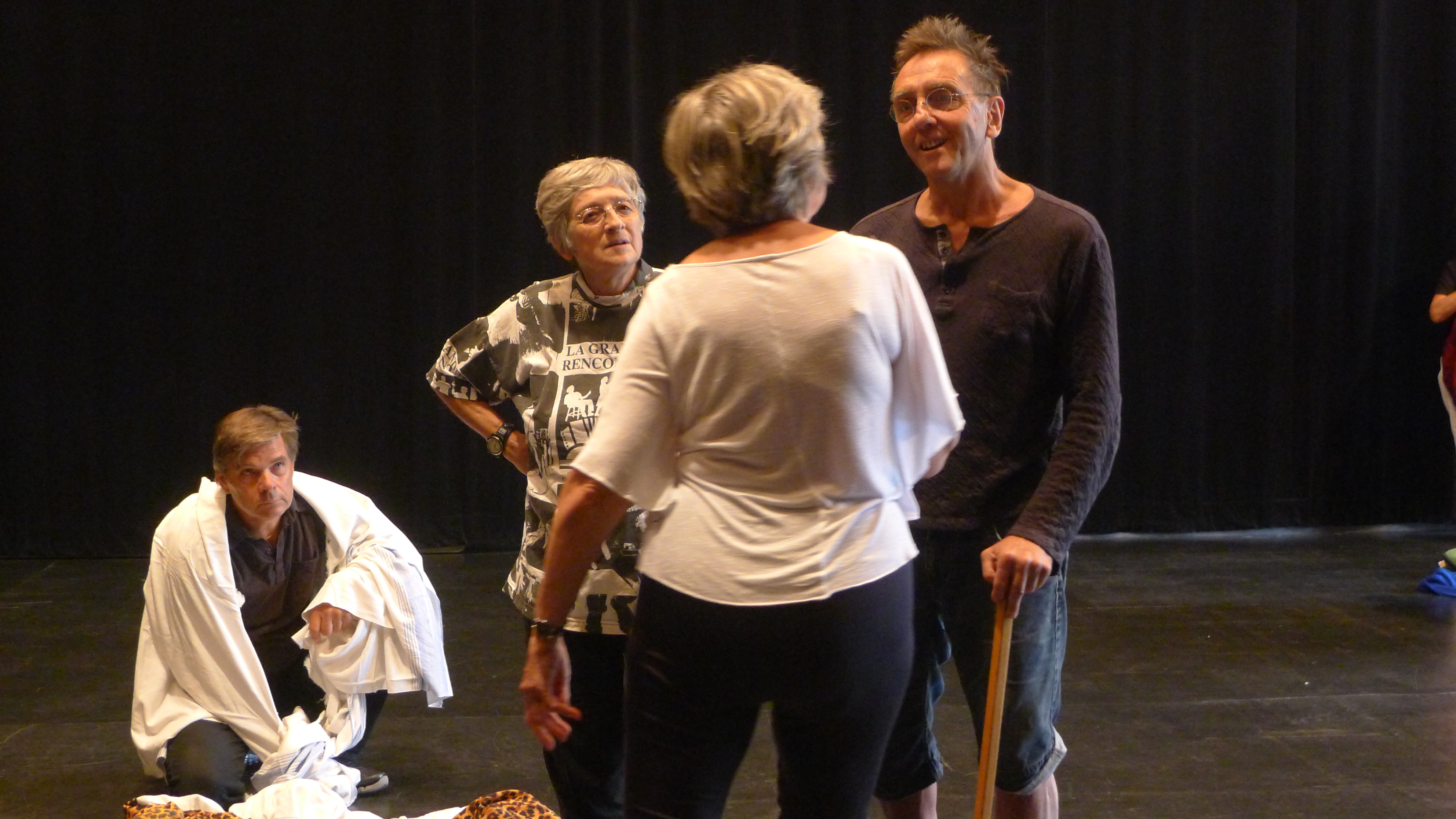 C’est fébrile, le groupe travaille sur les dernières explorations avant une présentation à quelques personnes de la direction du Théâtre de la Ville : Anne-Marie Provencher, directrice artistique, Marie-Pier Turgeon, directrice des communications, et Sabrina Martin, assistante aux communications et agente de développement en danse et jeune public. Pour nos premières spectatrices, on répète un «filage»: le vol, le nid, les oiseaux blessés, la mort, mais aussi la vie ..