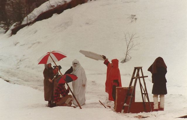 On commence un tournage après une belle tempête de neige dans les montagnes de Tewkesbury.