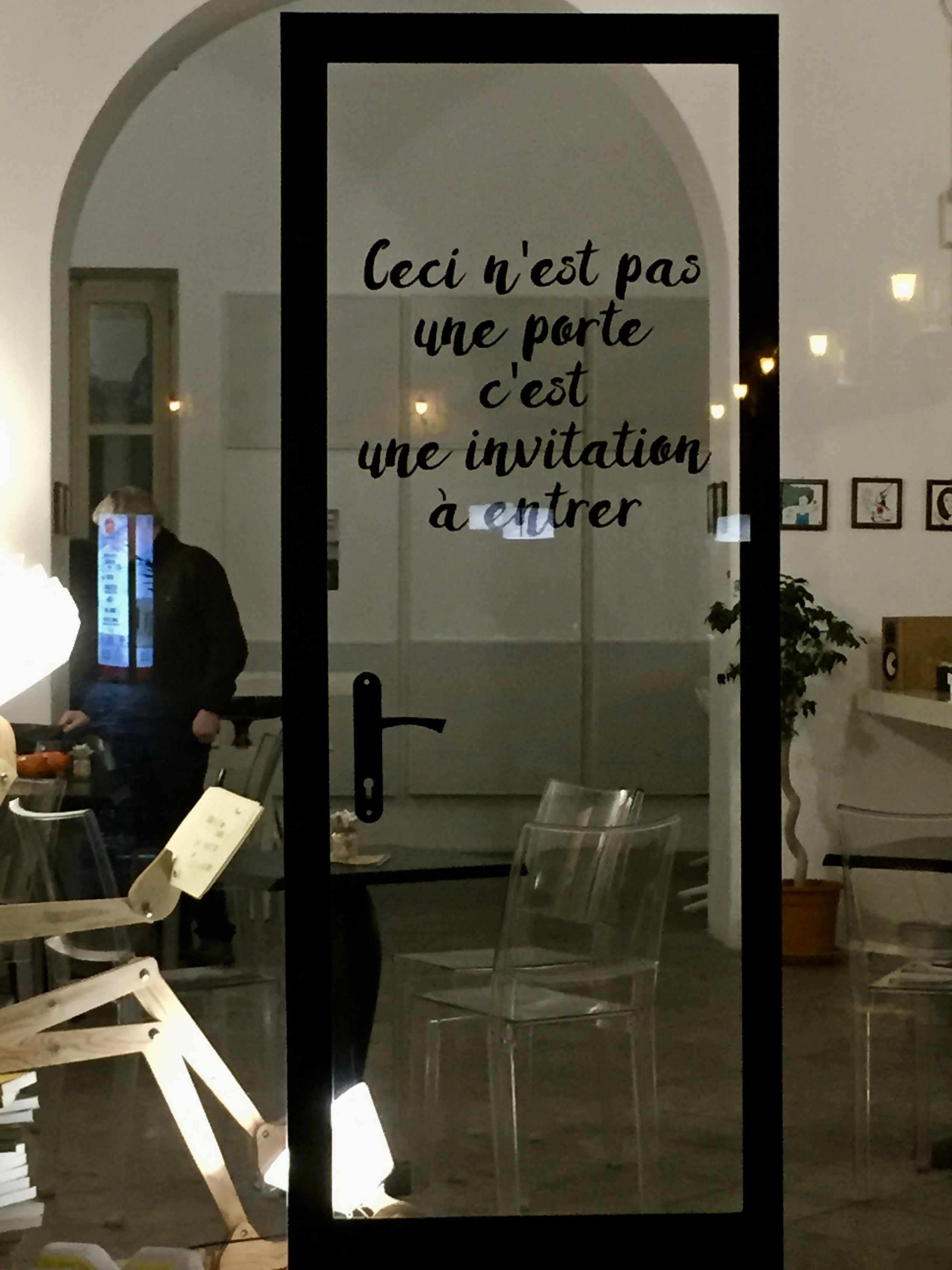 J’entre et je demande : « Pouvez-vous me dire qui crée ces superbes masques ? » Une dame, plus très jeune, mais avec un air et un ton espiègle me répond « C’est moi… »