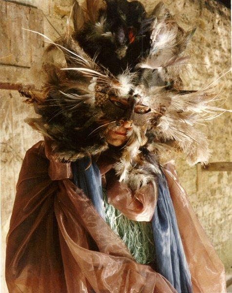 Nous avons fait plusieurs tentatives avec les trapézistes pour utiliser le masque de Danielle Marie, mais ça s’avérait trop dangereux : les plumes s’accrochaient facilement dans les cordages et la vision, qui doit être dégagée, l’était grandement et mettait nos trapézistes en danger. C’est ainsi que le masque de chouette de Danielle Marie se transforma en porte bonheur ! Et lorsqu’il y a eu une projection rue du Bac, à la Délégation du Québec, ce fut un bonheur d’inviter Danielle. C’était le début d’une longue et belle histoire d’amitié et de complicité.